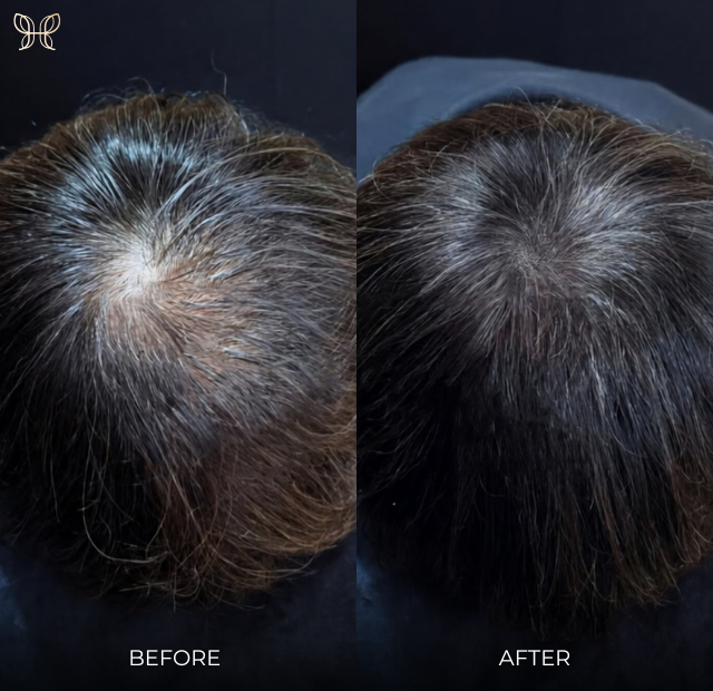 The first sessions are scheduled 7 to 14 days apart to allow your scalp to heal properly between applications. The final session takes place 4 weeks after the last one, ensuring the most consistent and natural result possible.